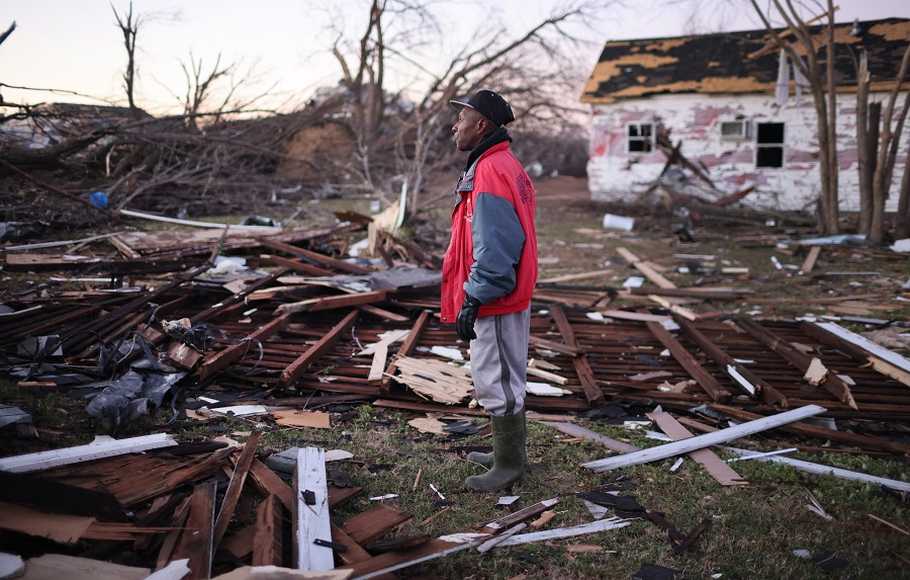 Selasa, 14 Desember 2021 | 09:22 WIB Oleh : Surya Lesmana / LES Randy Wimbley memeriksa sisa-sisa rumahnya pada 13 Desember 2021, yang hancur dite....